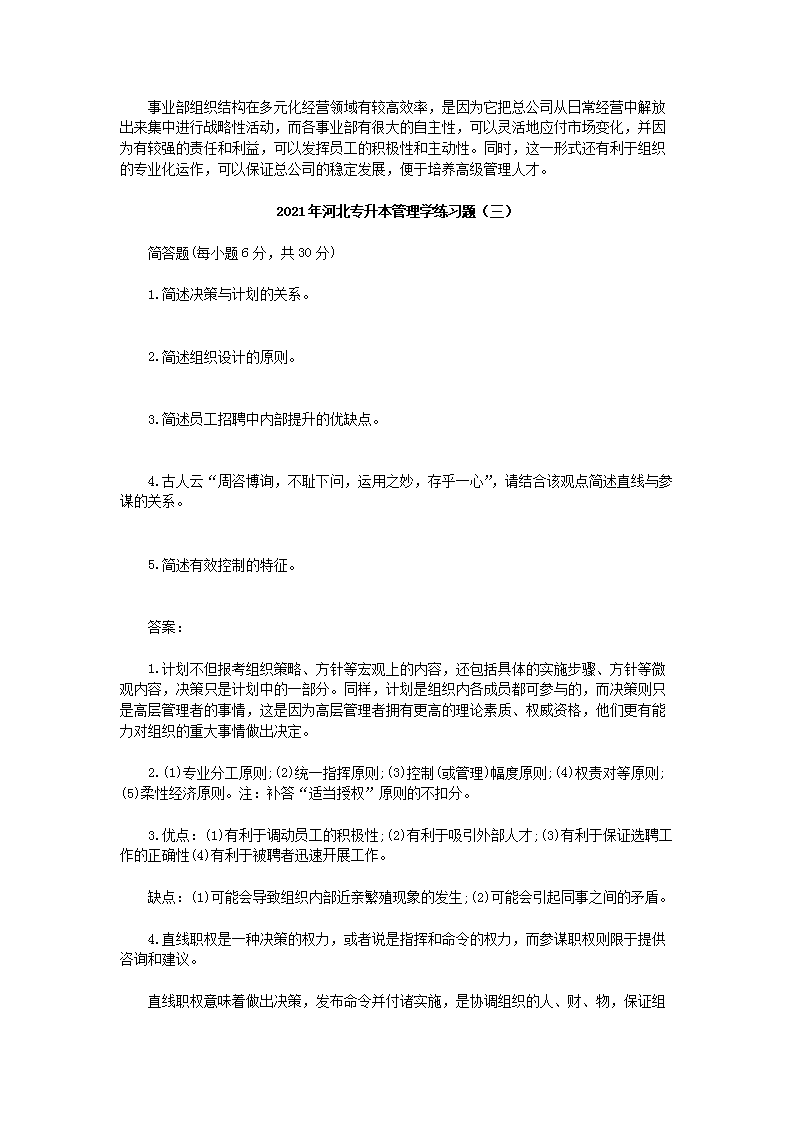 【文档预览】 无忧考网整理发布2021年河北专升本管理学练习题三套(Word版),前五页预览如下: