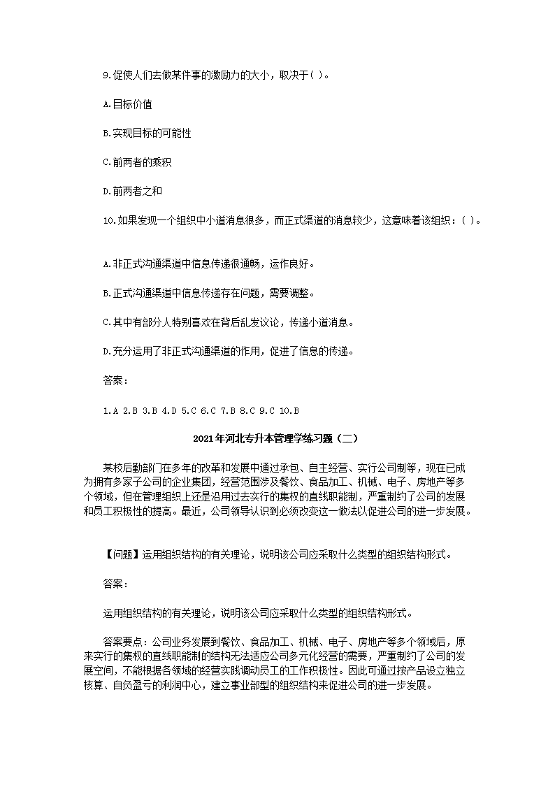 【文档名称】 2021年河北专升本管理学练习题三套(Word版).doc