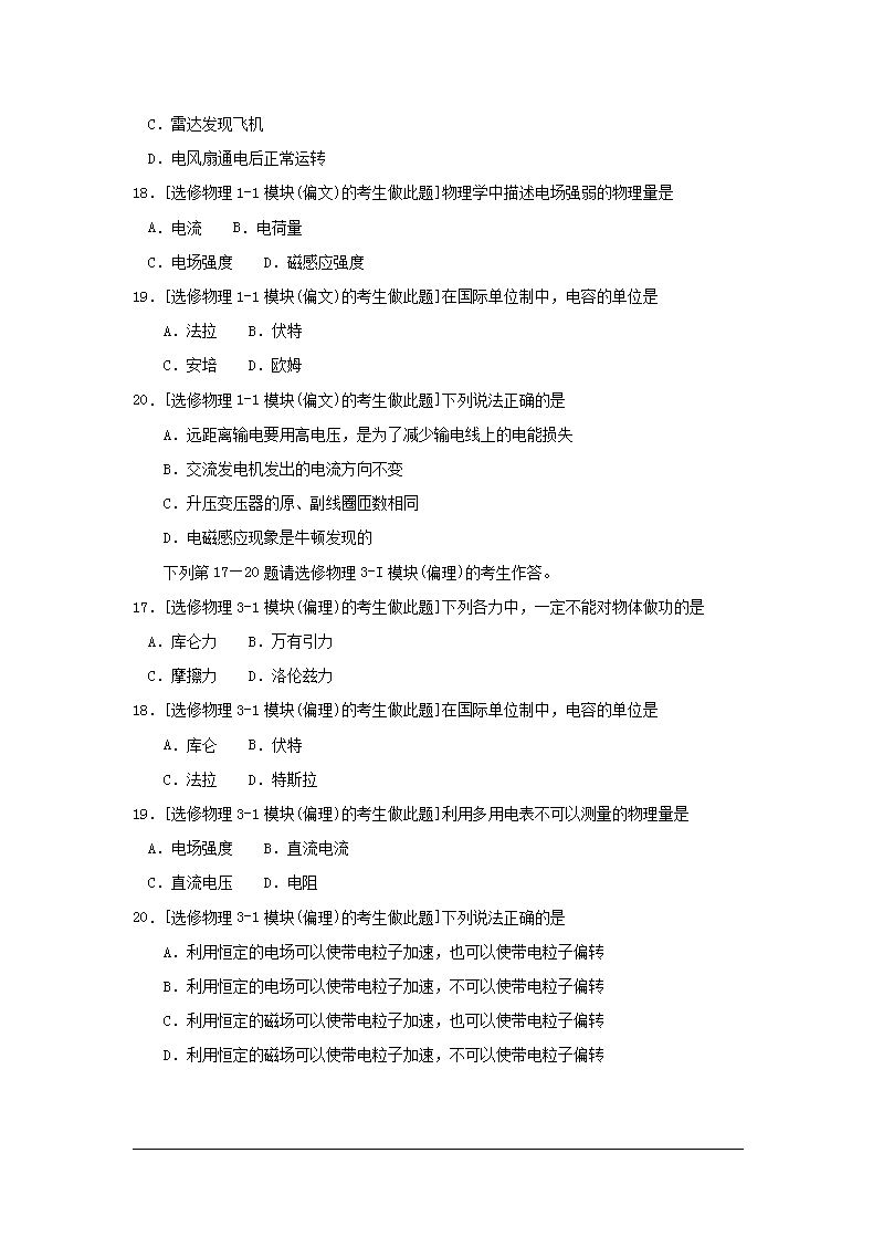【文档预览】 无忧考网整理发布2011年湖南普通高中会考物理考试真题(Word版),前五页预览如下: