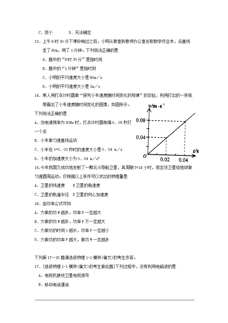 【文档名称】 2011年湖南普通高中会考物理考试真题(Word版).doc