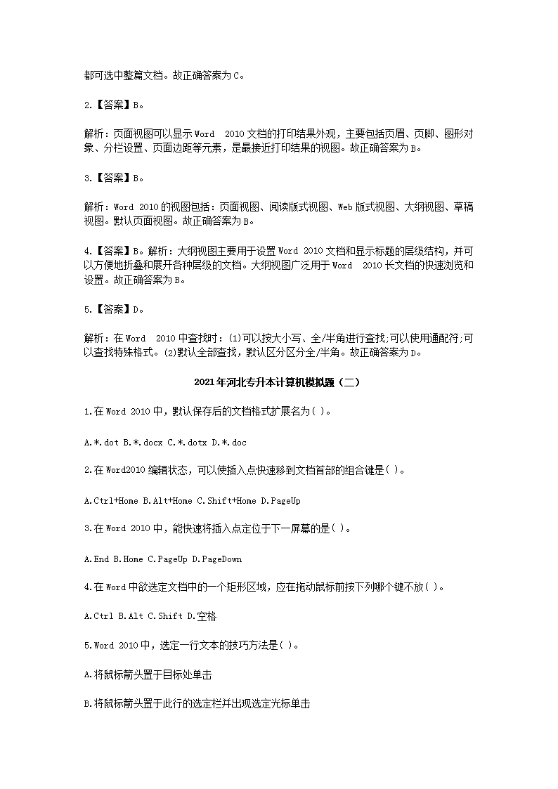 【文档名称】 2021年河北专升本计算机模拟题三套(Word版).doc