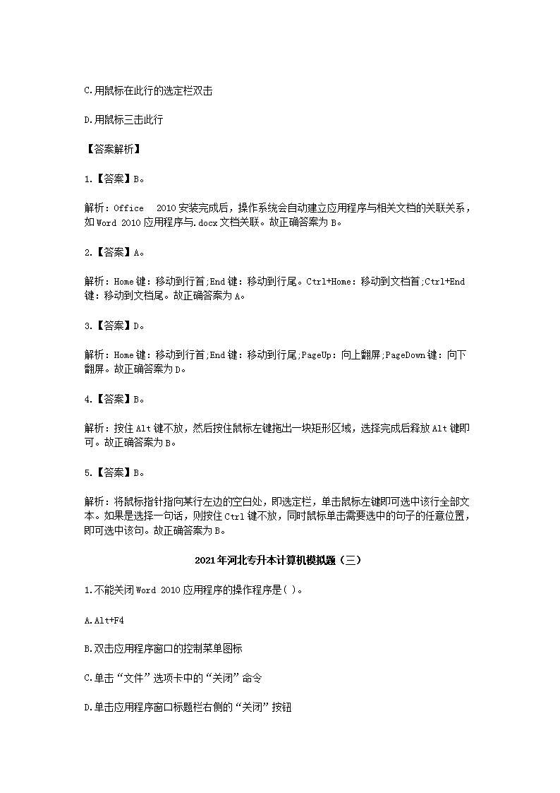 【文档预览】 无忧考网整理发布2021年河北专升本计算机模拟题三套(Word版),前五页预览如下:
