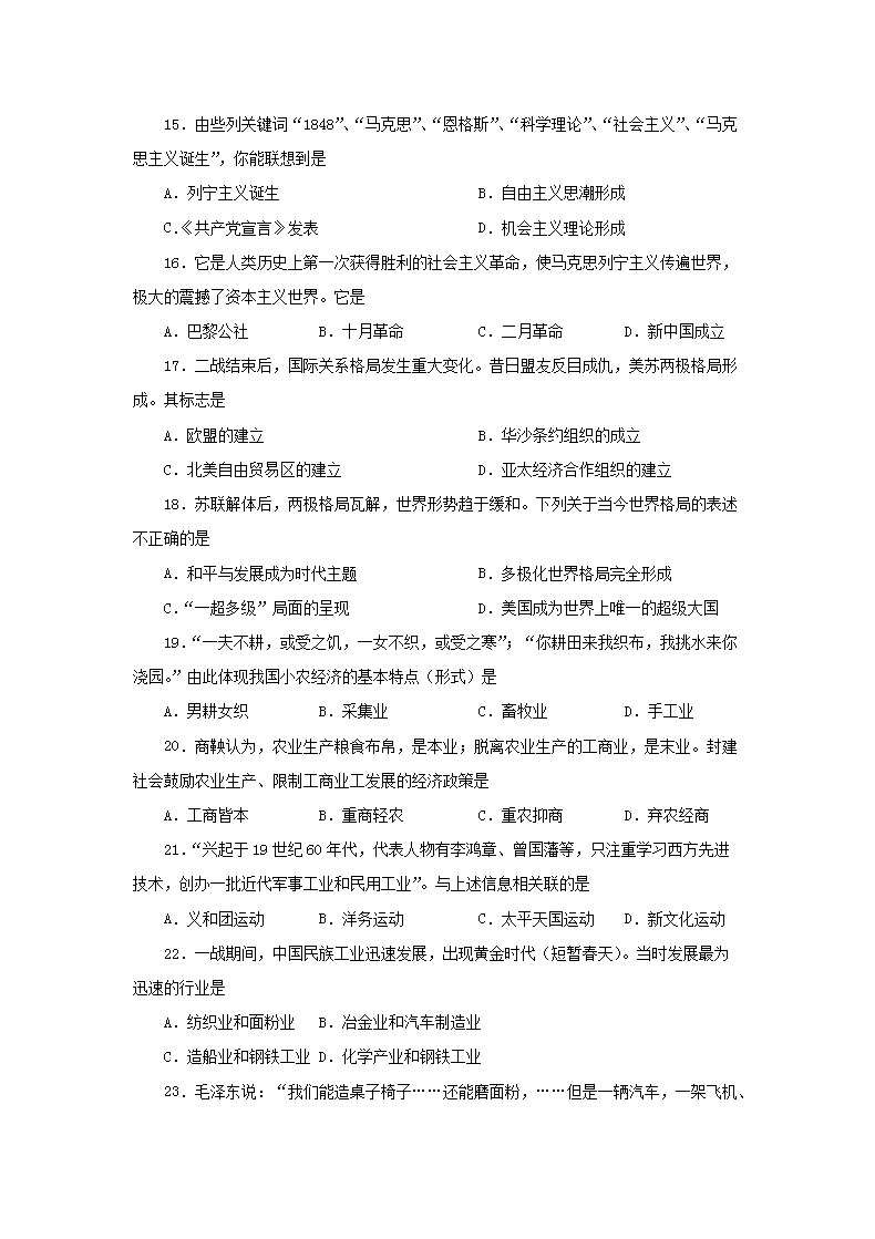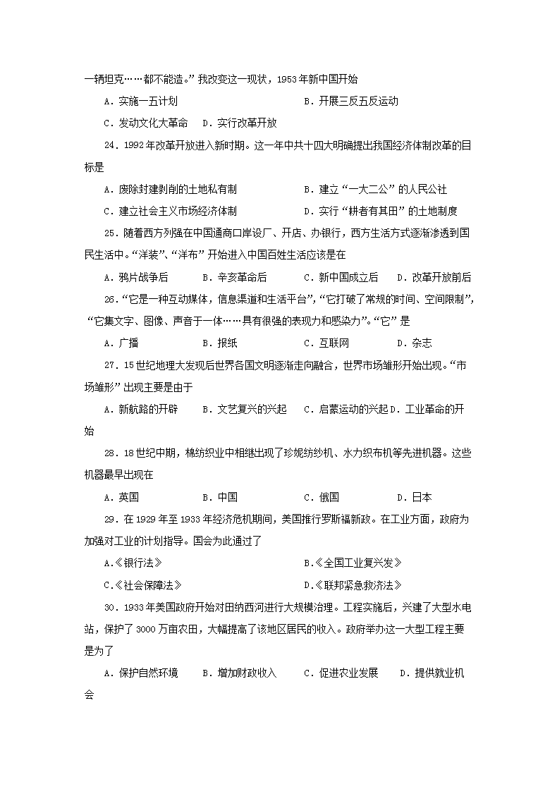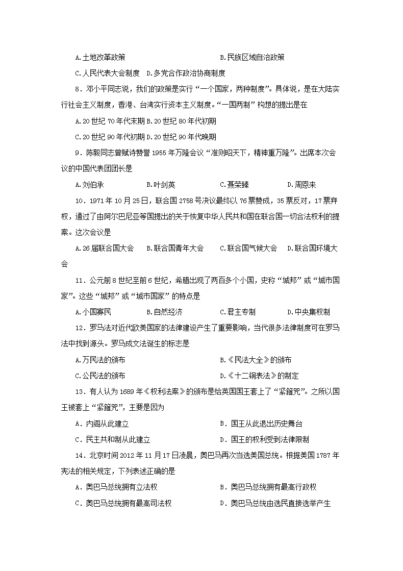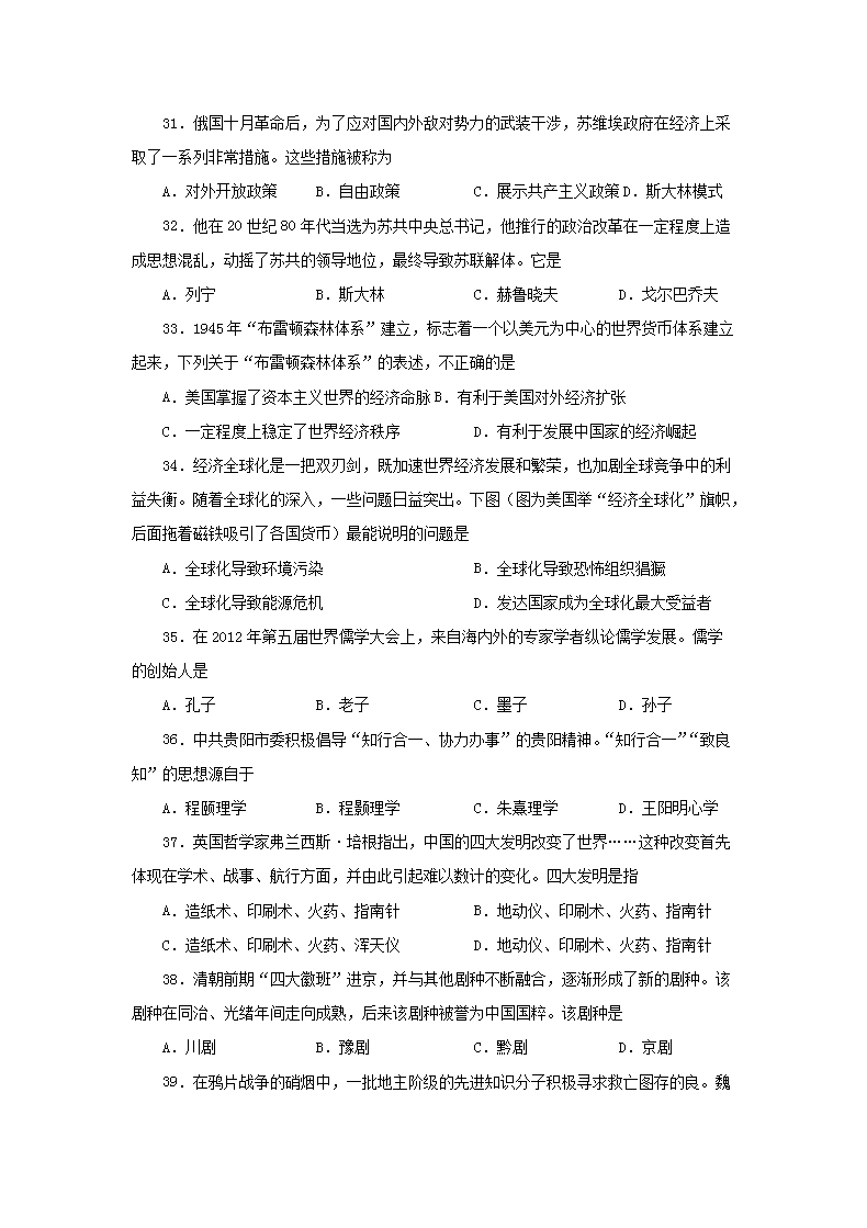 【文档名称】 2012年贵州普通高中会考历史真题及答案(Word版).doc