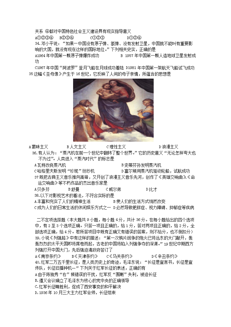 【文档名称】 2013年贵州普通高中会考历史真题及答案(Word版).doc