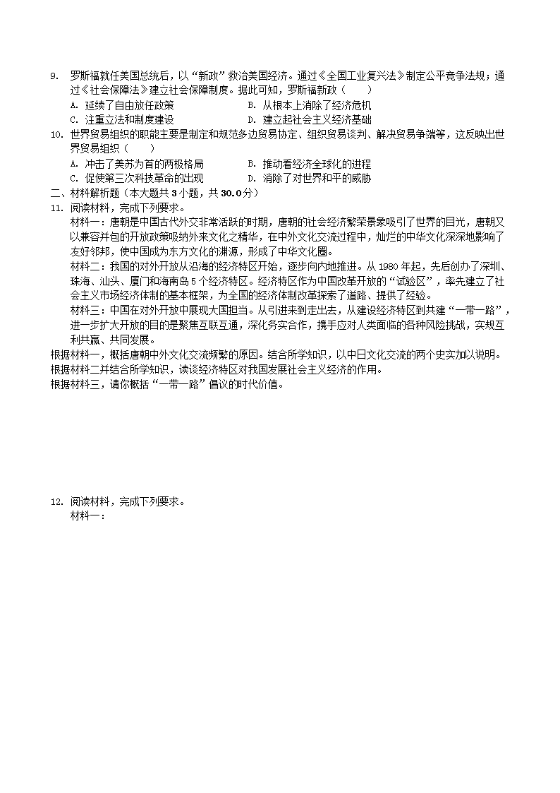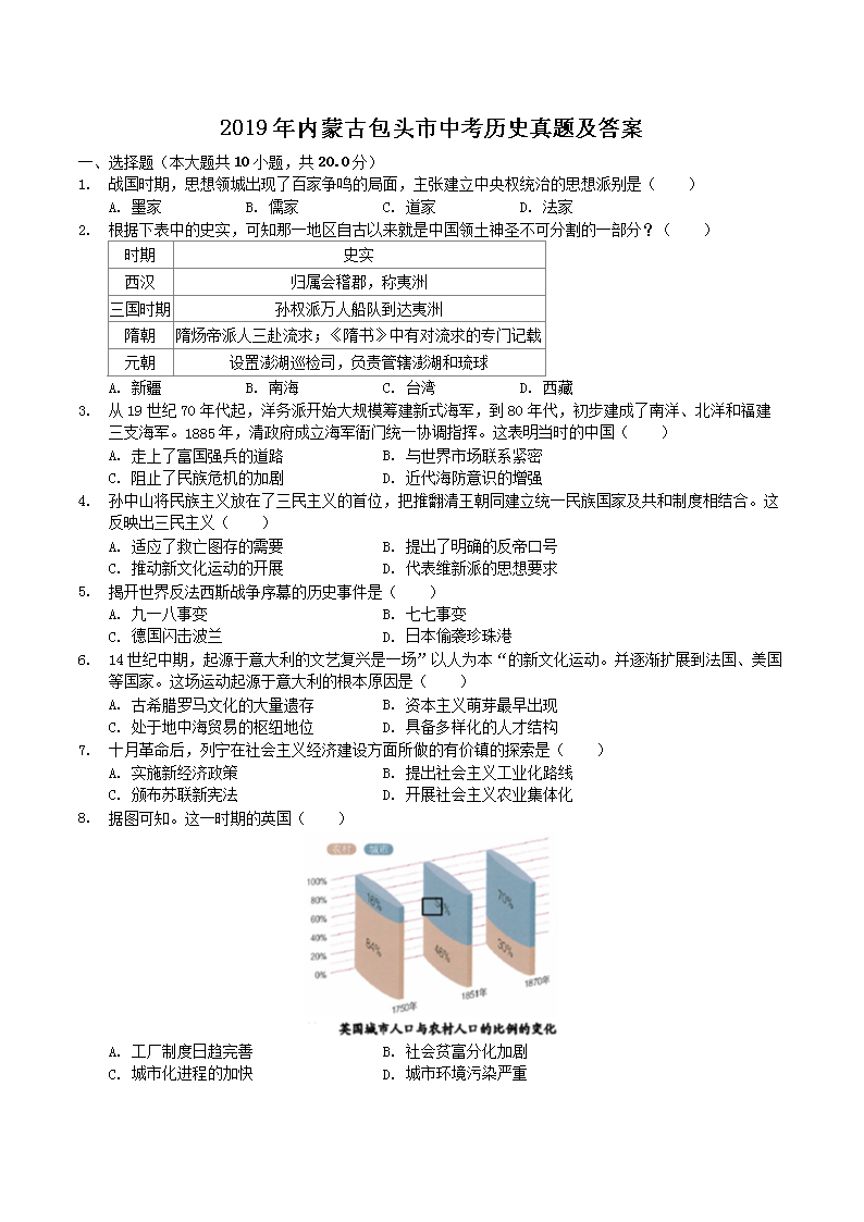 【文档名称】 2019年内蒙古包头市中考历史真题及答案(Word版).doc