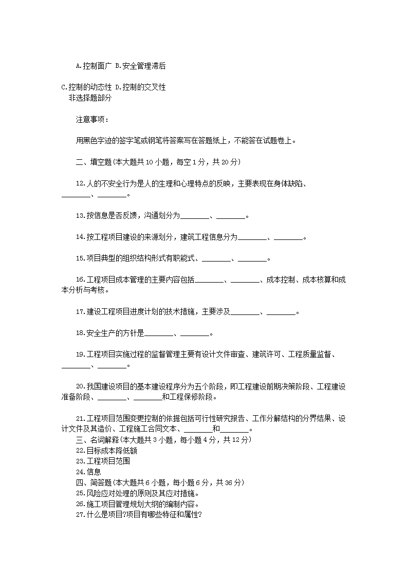 【文档名称】 2014年4月浙江省高等教育自学考试建设项目管理真题(Word版).doc