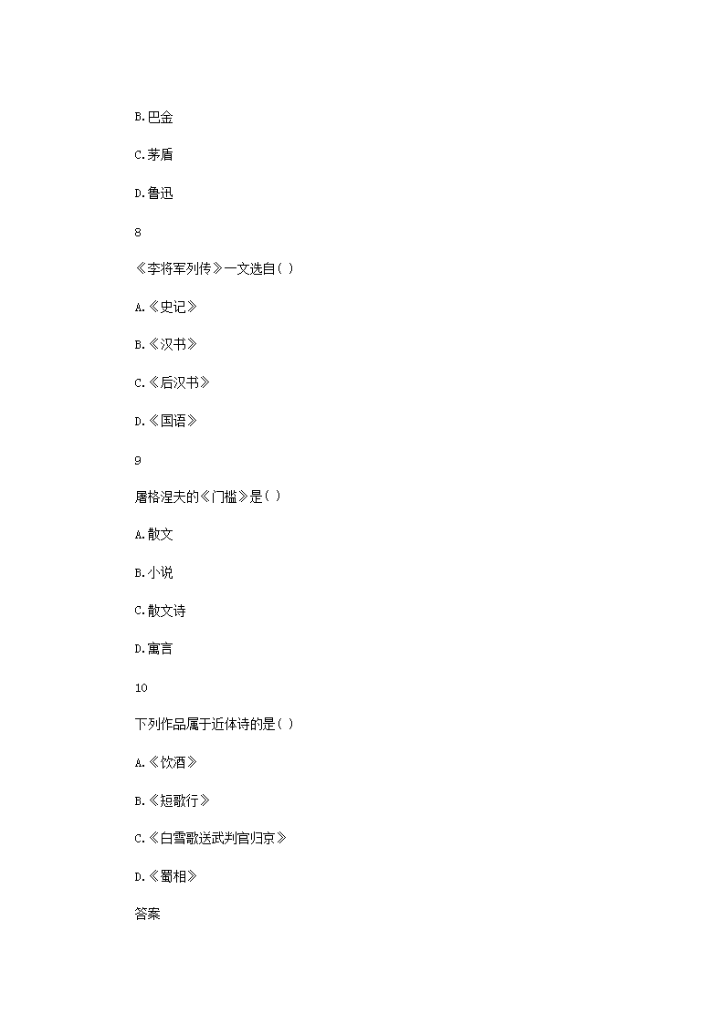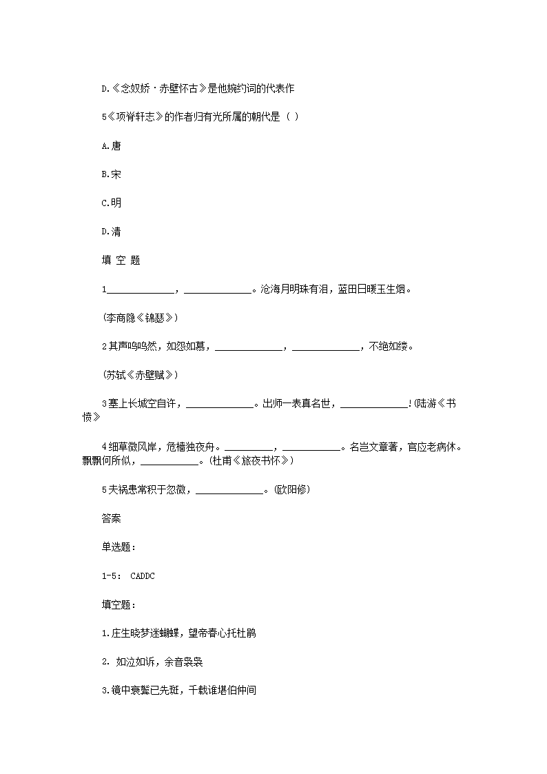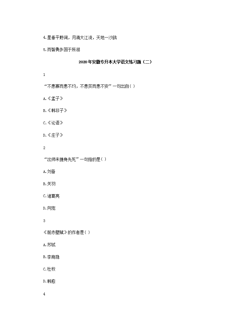 【文档名称】 2020年安徽专升本大学语文练习题三套(Word版).doc