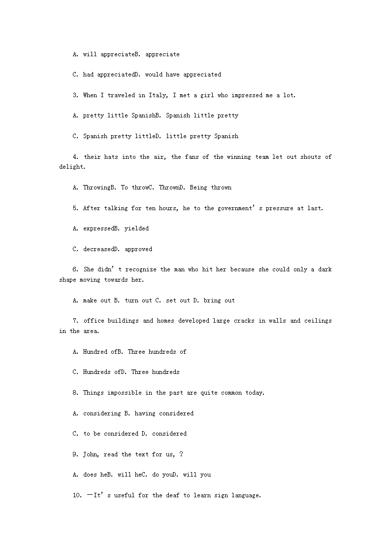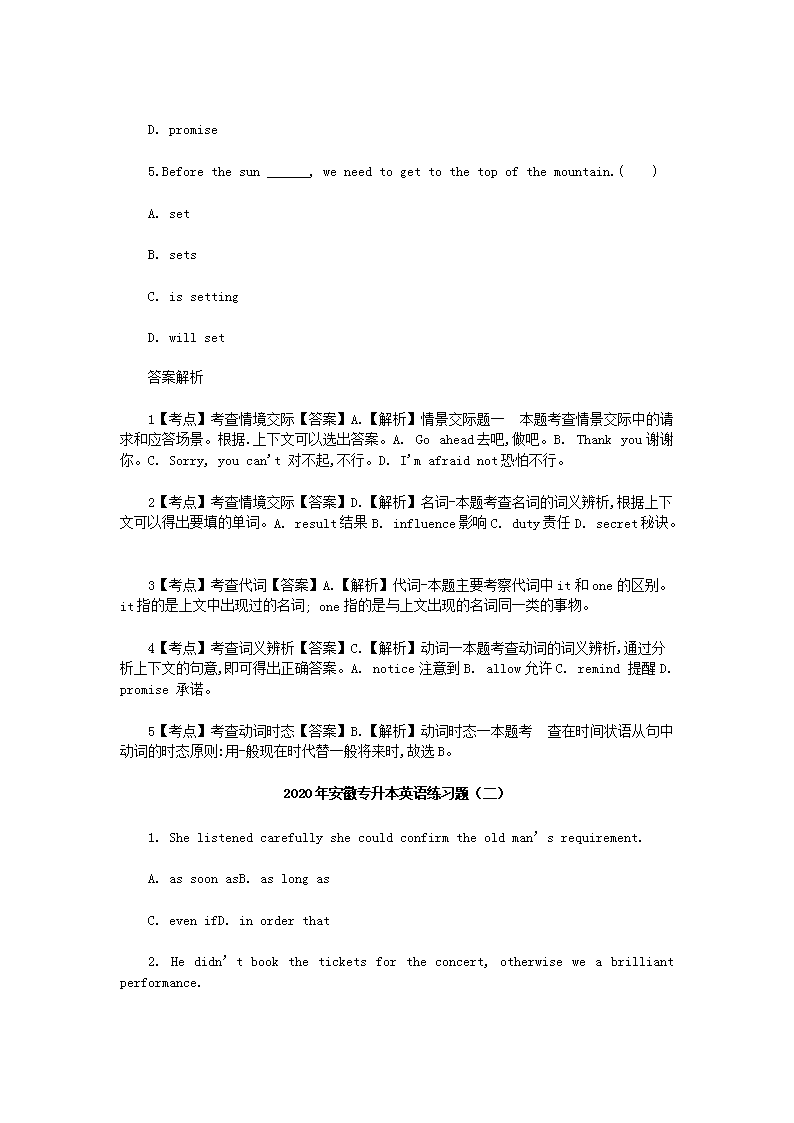 【文档预览】 无忧考网整理发布2020年安徽专升本英语练习题三套(Word版),前五页预览如下: