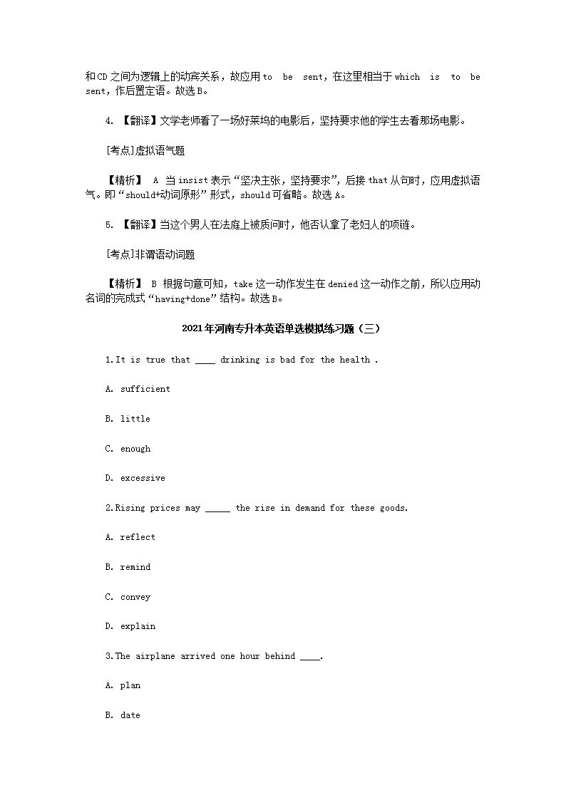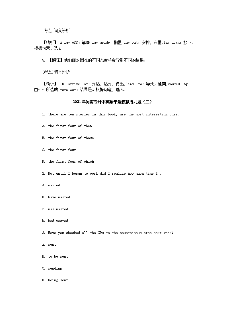 【文档名称】 2021年河南专升本英语单选模拟练习题三套(Word版).doc