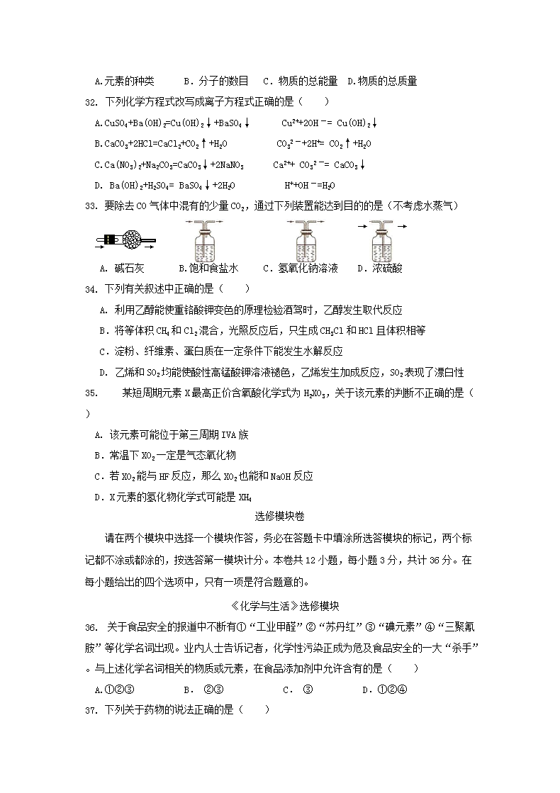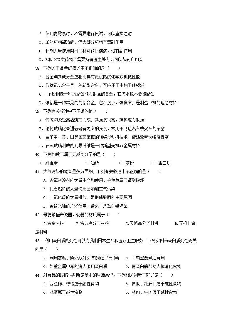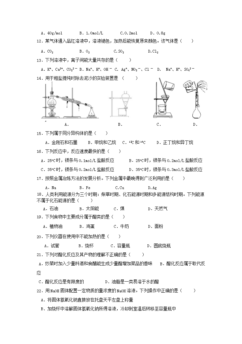 【文档名称】 2013年贵州普通高中会考化学真题及答案(Word版).doc