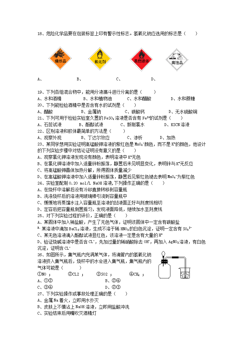 【文档预览】 无忧考网整理发布2010年江西普通高中会考化学真题及答案(Word版),前五页预览如下: