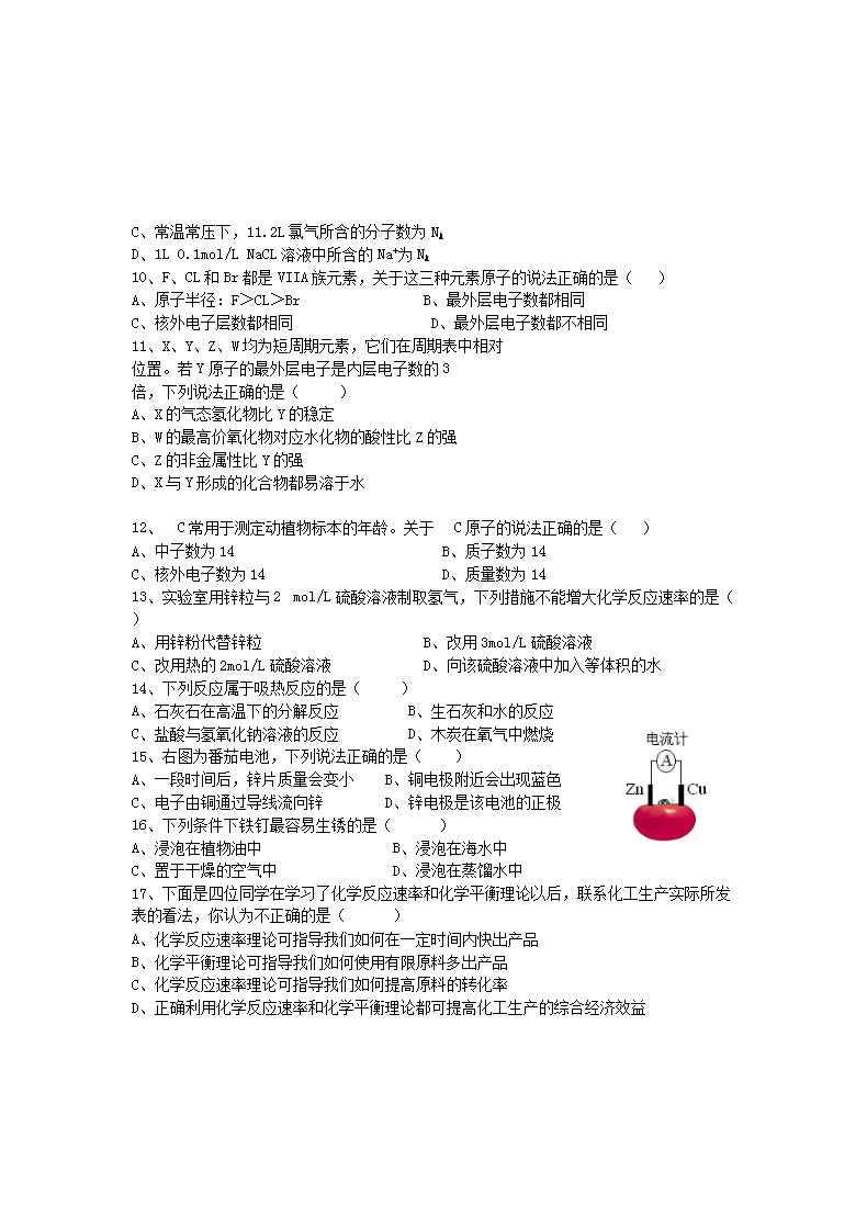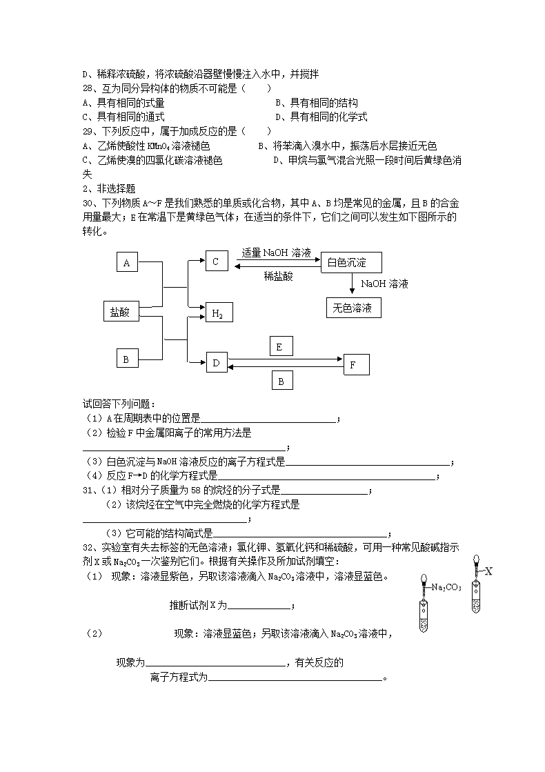【文档名称】 2010年江西普通高中会考化学真题及答案(Word版).doc