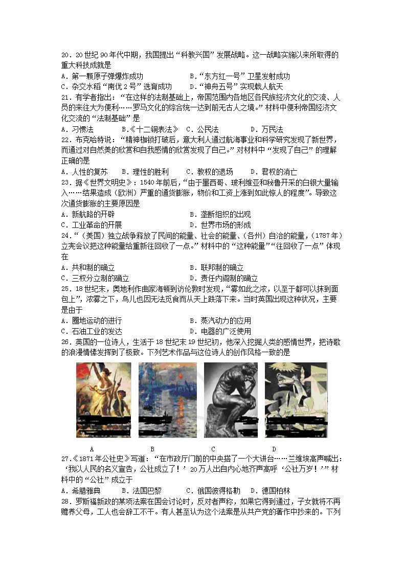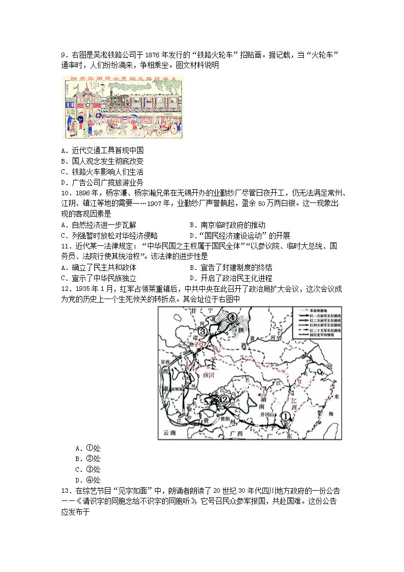 【文档名称】 2017年江苏普通高中会考历史真题及答案(Word版).doc