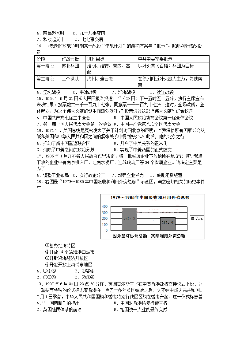 【文档预览】 无忧考网整理发布2017年江苏普通高中会考历史真题及答案(Word版),前五页预览如下: