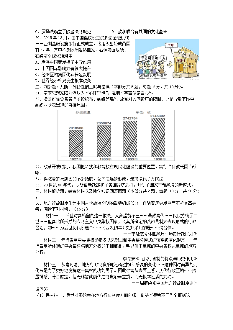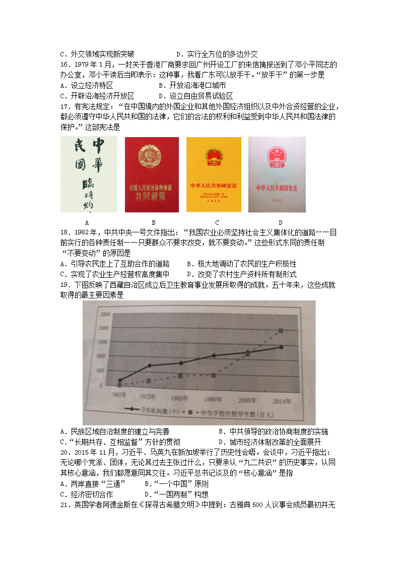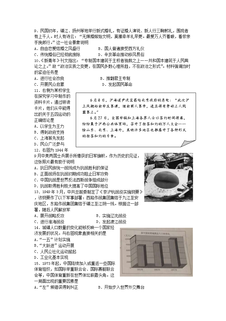 【文档名称】 2016年江苏普通高中会考历史真题及答案(Word版).doc