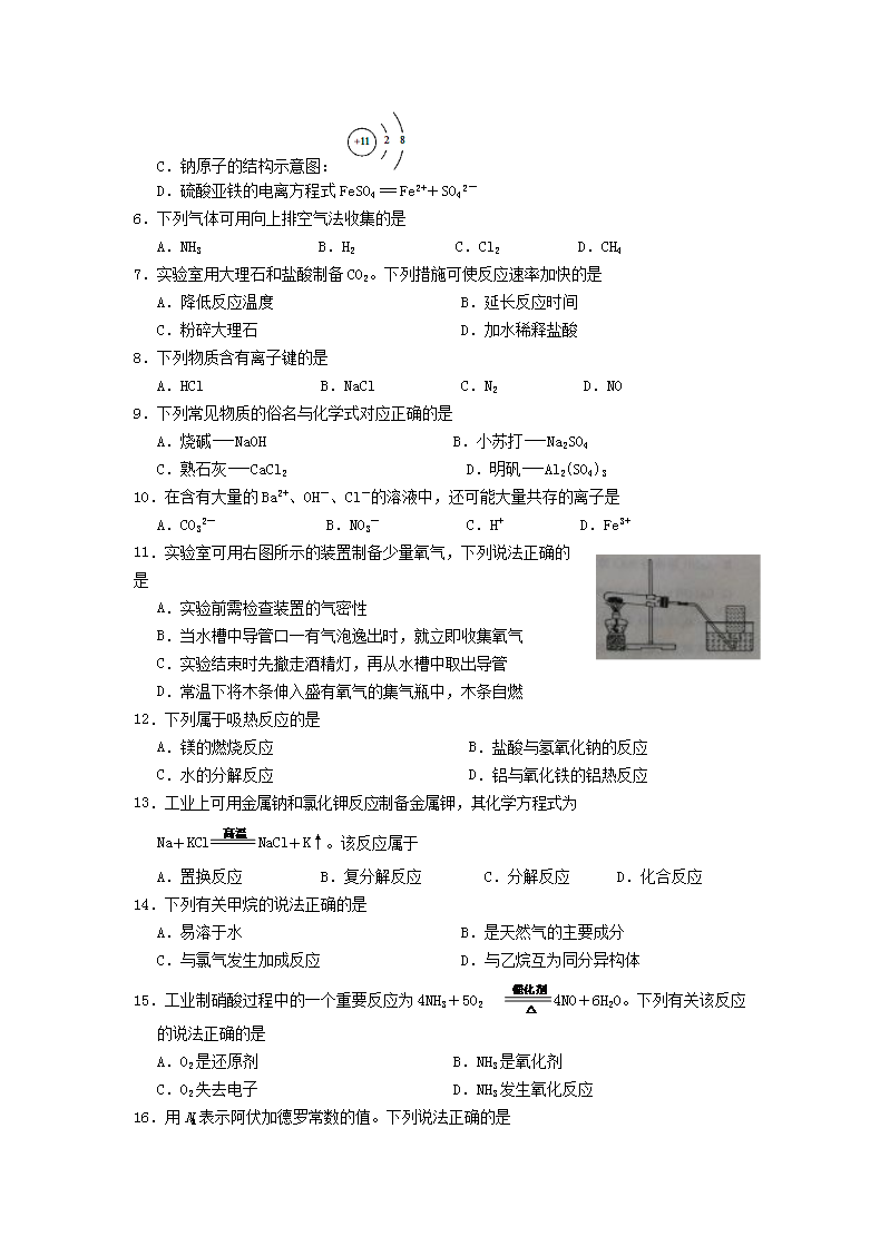 【文档名称】 2016年江苏普通高中会考化学真题及答案(Word版).doc