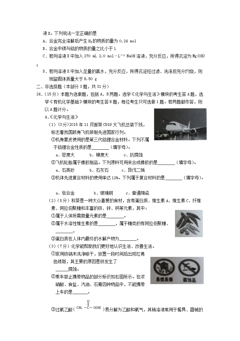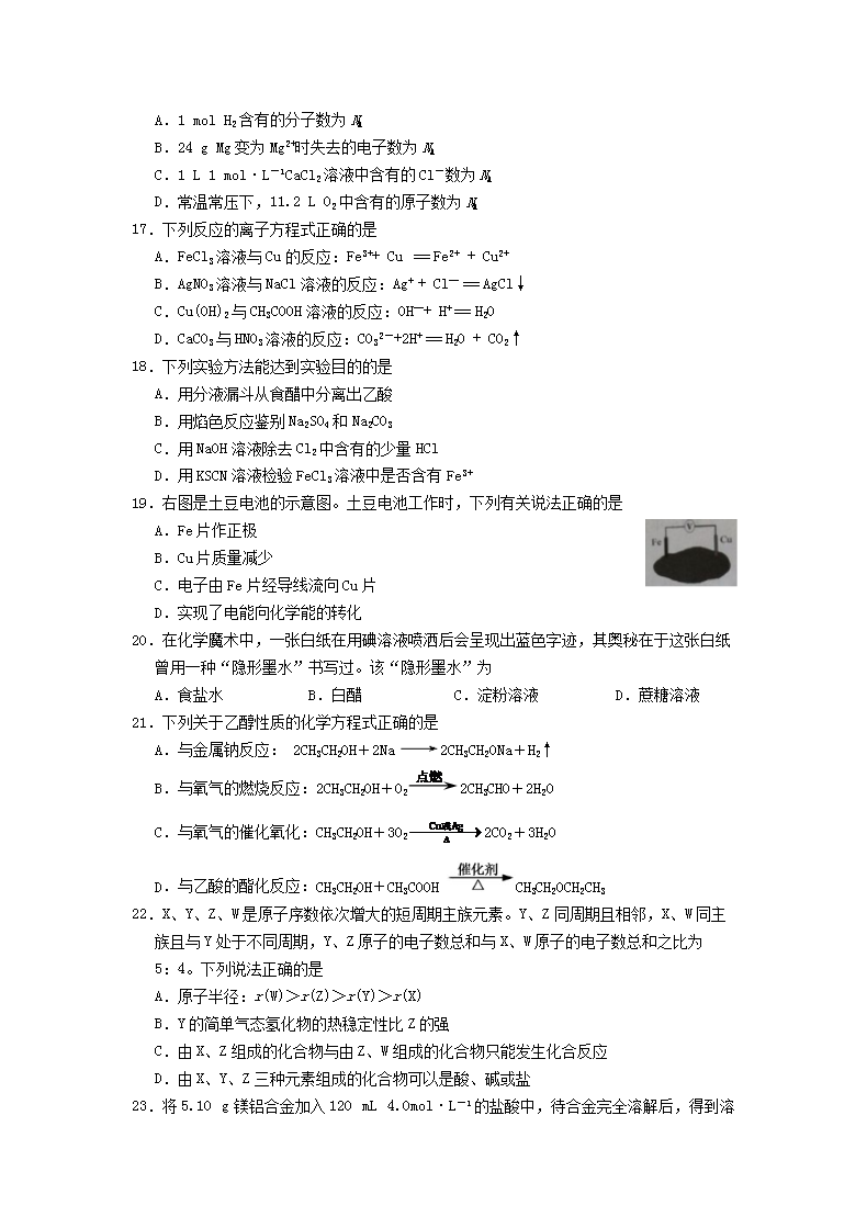 【文档预览】 无忧考网整理发布2016年江苏普通高中会考化学真题及答案(Word版),前五页预览如下: