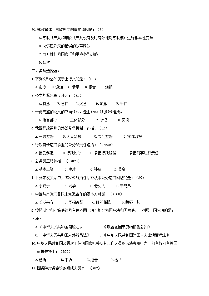 【文档名称】 2011年陕西省事业单位考试公共基础知识真题及参考答案(Word版).doc