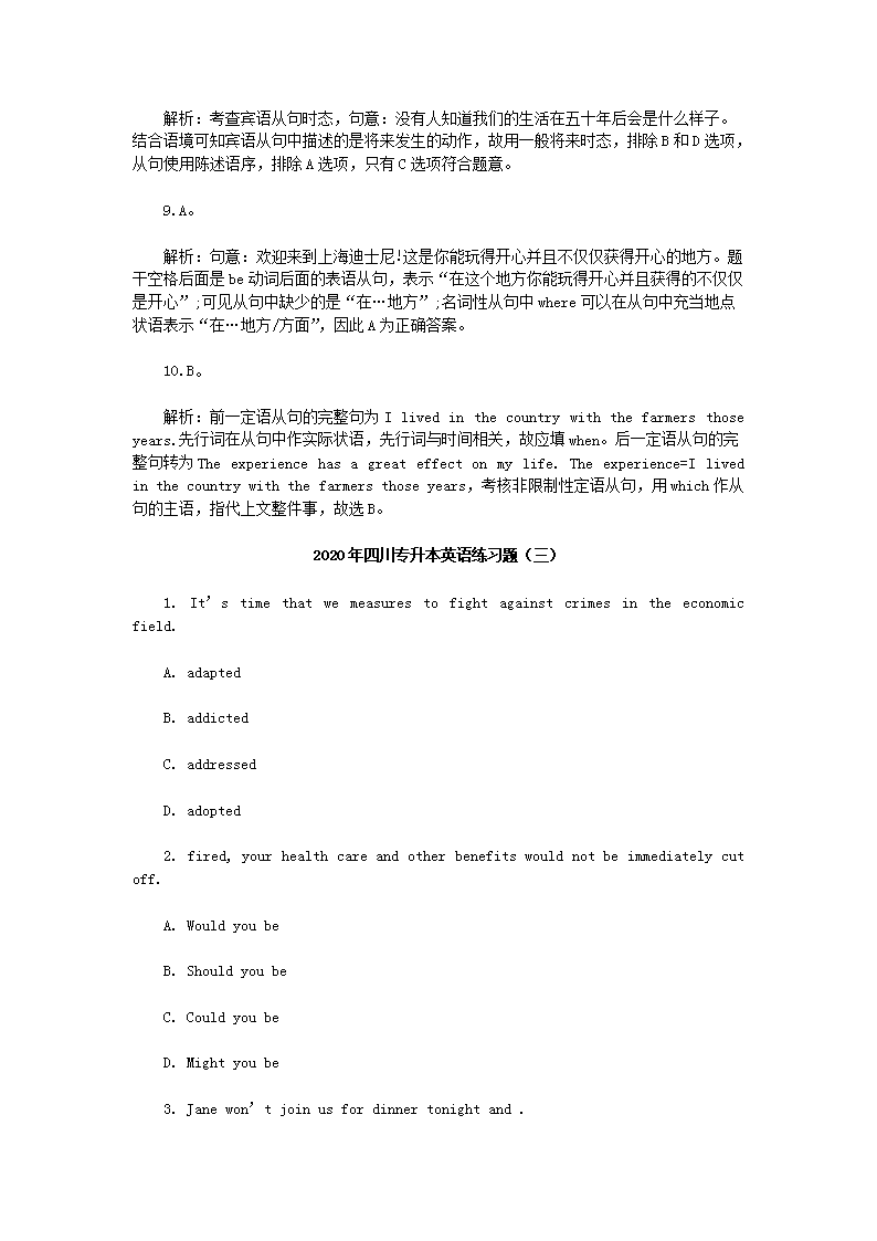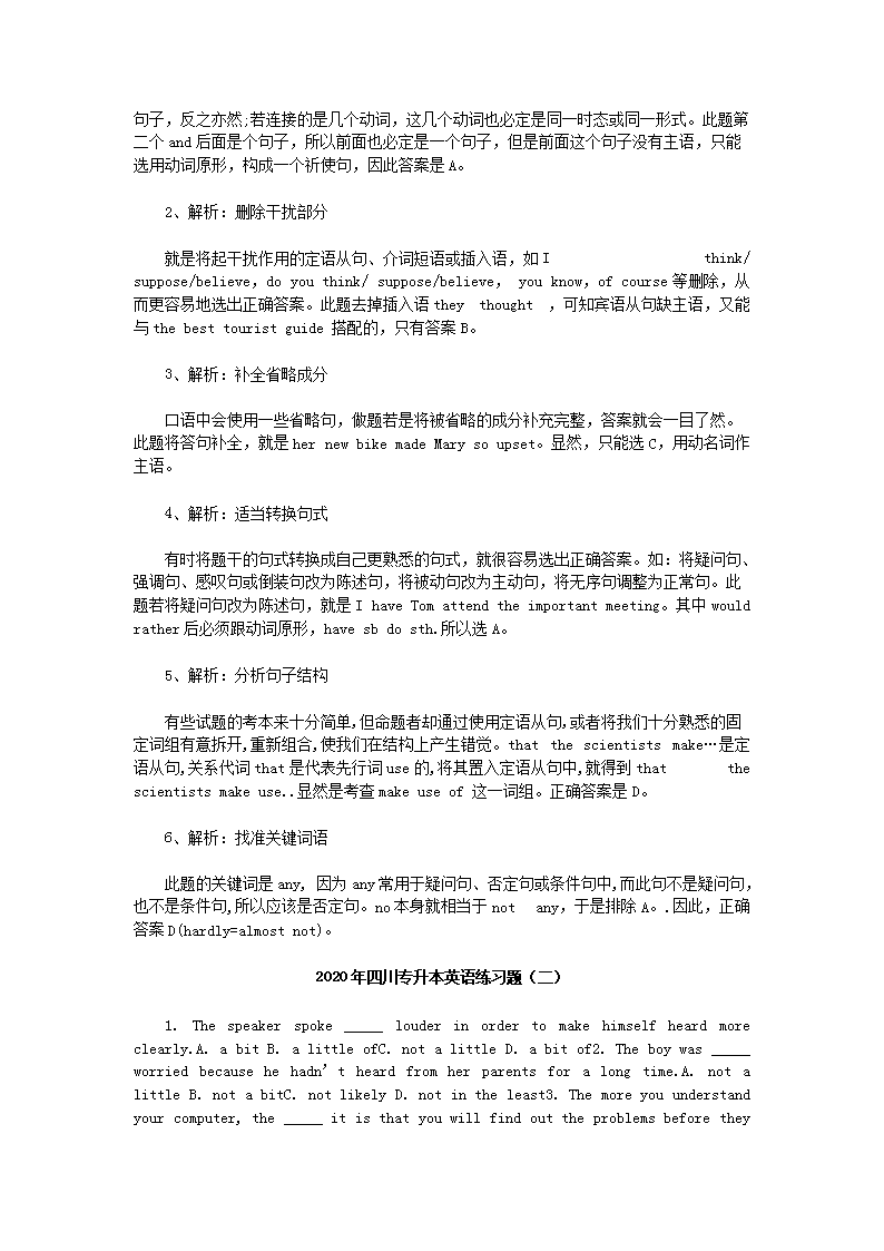 【文档预览】 无忧考网整理发布2020年四川专升本英语练习题三套(Word版),前五页预览如下: