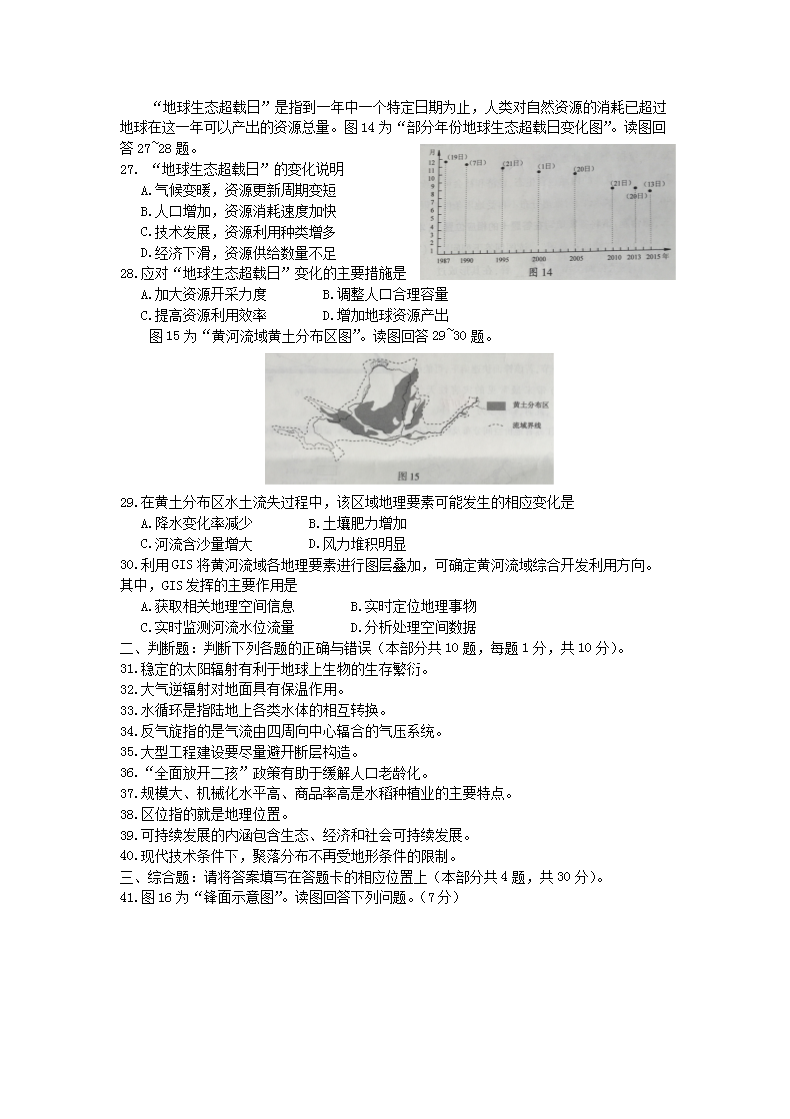 【文档预览】 无忧考网整理发布2016年江苏普通高中会考地理真题及答案(Word版),前五页预览如下: