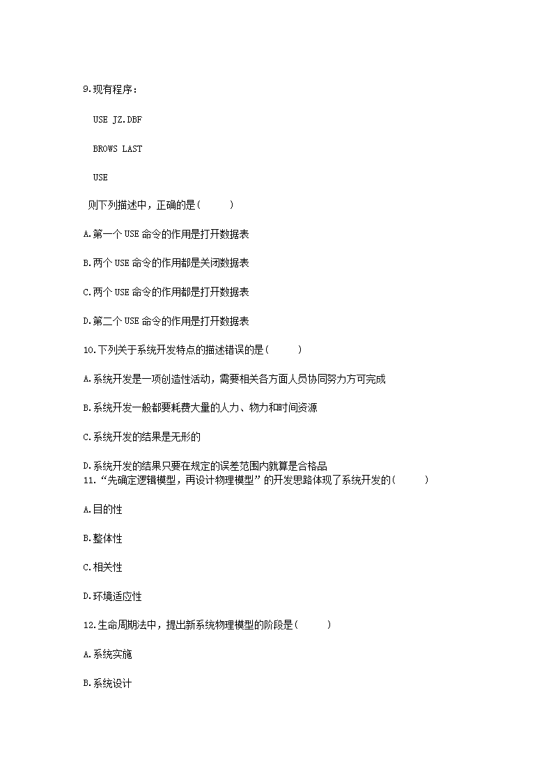 【文档预览】 无忧考网整理发布2011年1月全国高等教育自学考试管理系统中计算机应用真题(Word版),前五页预览如下: