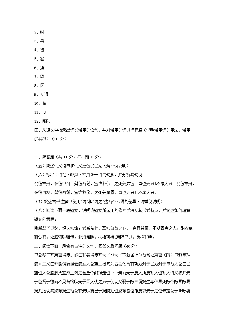 【文档预览】 无忧考网整理发布2005年福建华侨大学古代汉语考研真题(Word版),前五页预览如下: