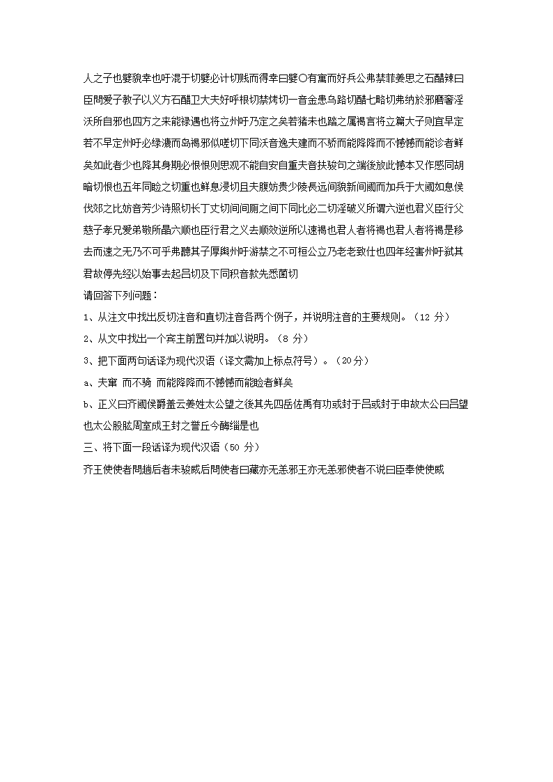 【文档名称】 2005年福建华侨大学古代汉语考研真题(Word版).doc