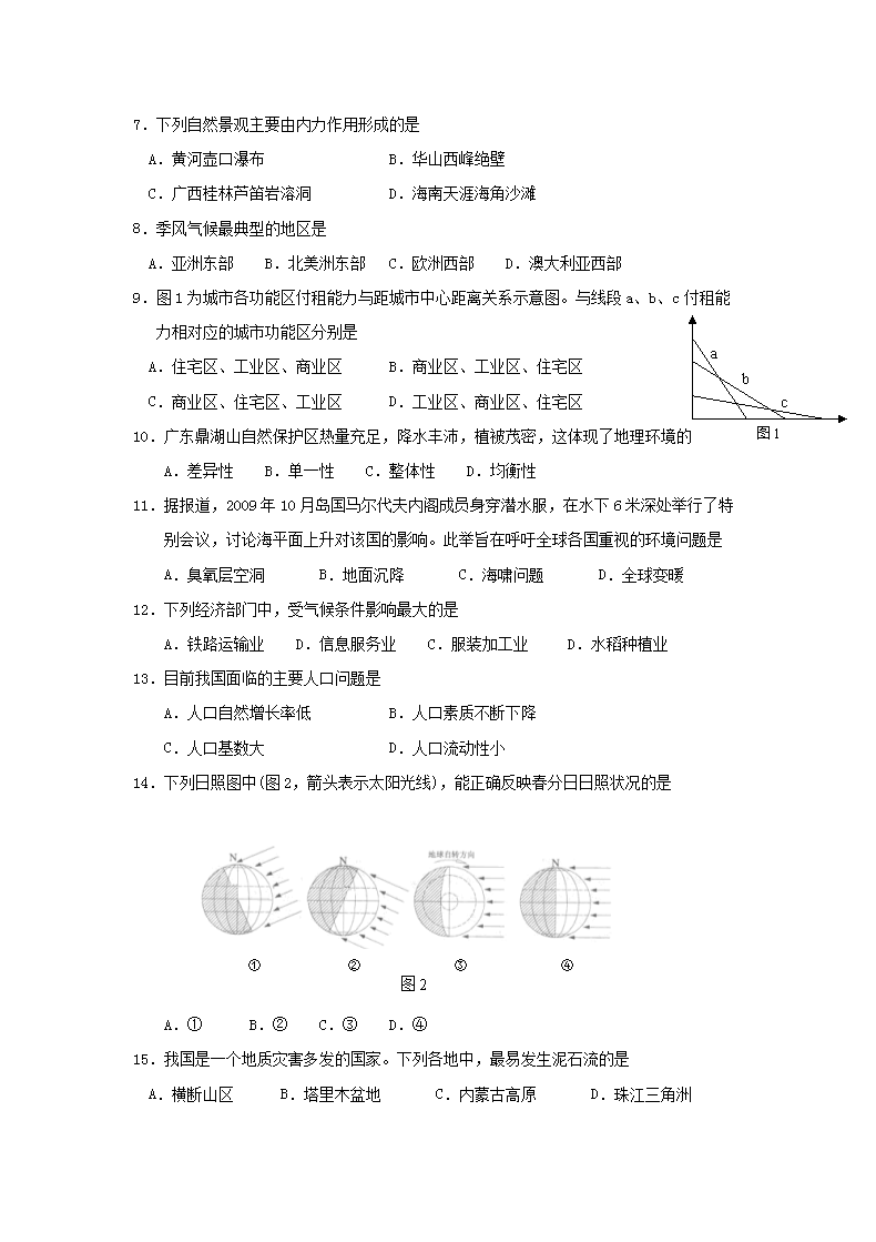 【文档名称】 2010年贵州普通高中会考地理真题及答案(Word版).doc