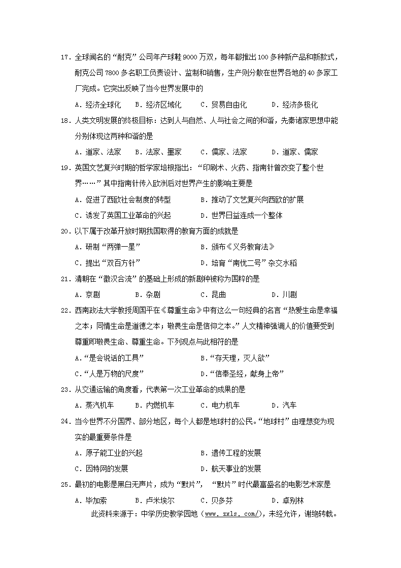 【文档预览】 无忧考网整理发布2015年新疆普通高中会考历史真题及答案(Word版),前五页预览如下: