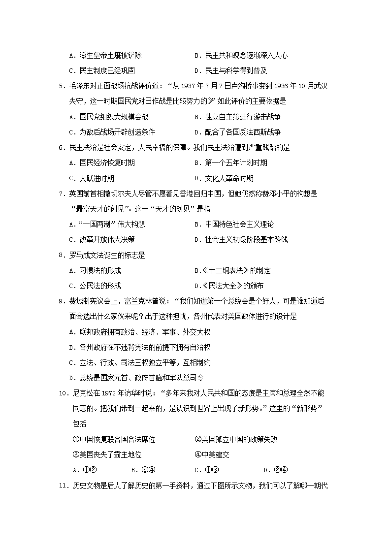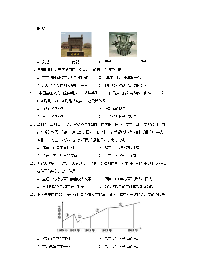 【文档名称】 2015年新疆普通高中会考历史真题及答案(Word版).doc
