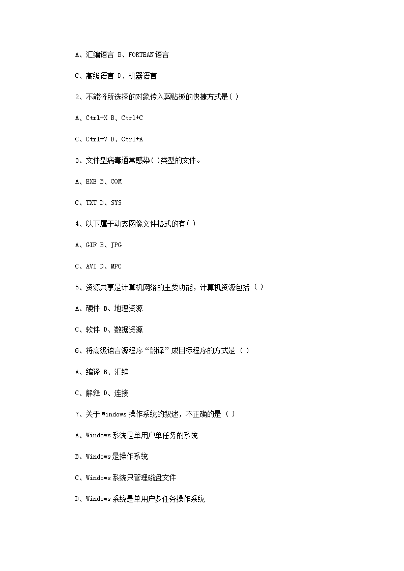 【文档预览】 无忧考网整理发布2020年山东专升本计算机练习题三套(Word版),前五页预览如下: