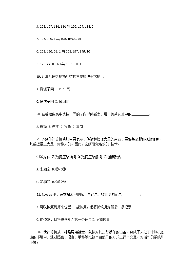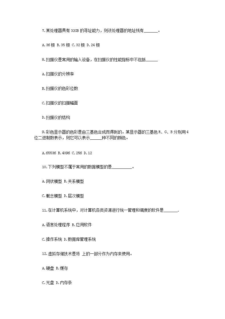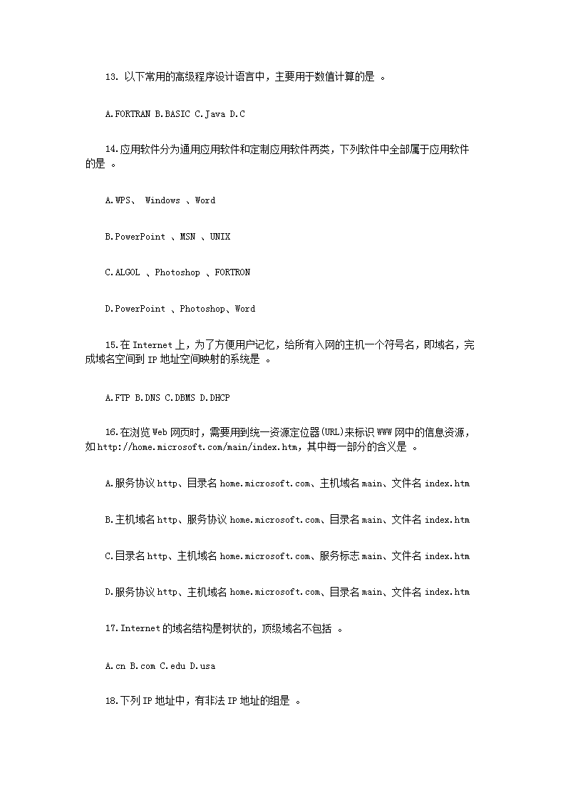 【文档预览】 无忧考网整理发布2020年山东专升本计算机模拟练习题三套(Word版),前五页预览如下: