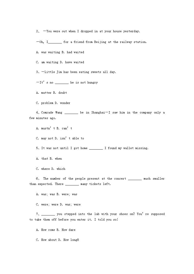 【文档预览】 无忧考网整理发布2020年山东专升本英语练习题三套(Word版),前五页预览如下: