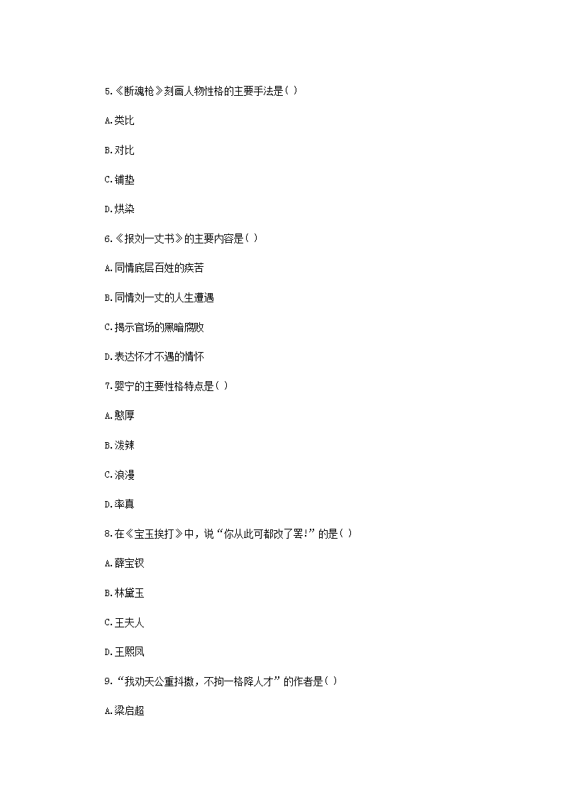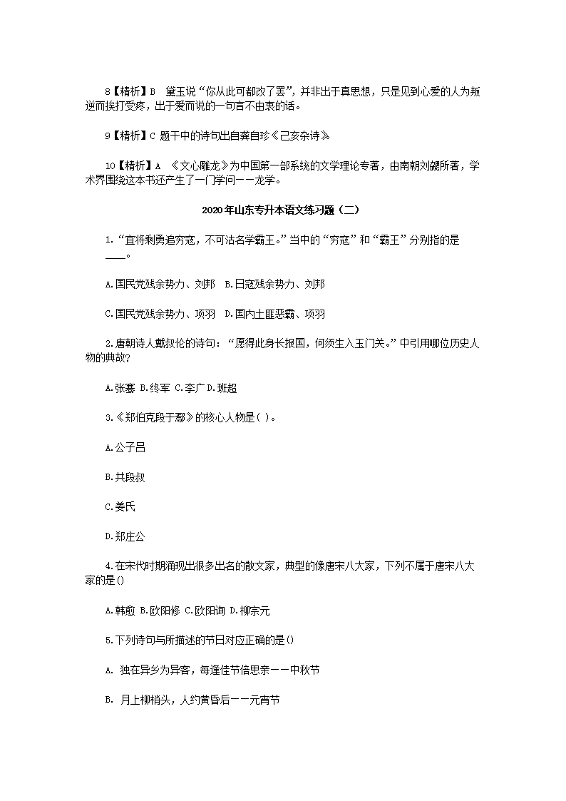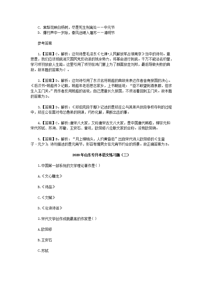 【文档名称】 2020年山东专升本语文练习题三套(Word版).doc
