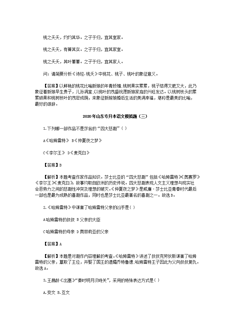 【文档名称】 2020年山东专升本语文模拟题四套(Word版).doc