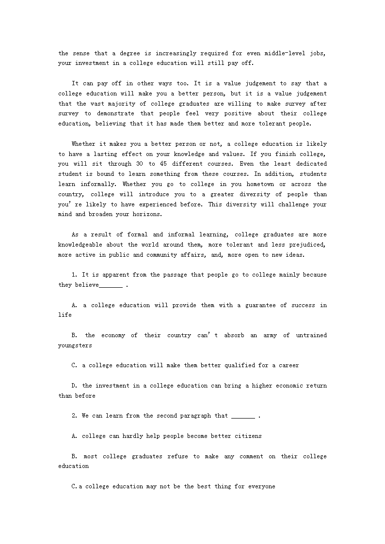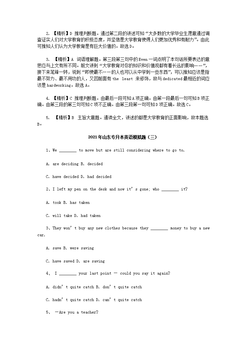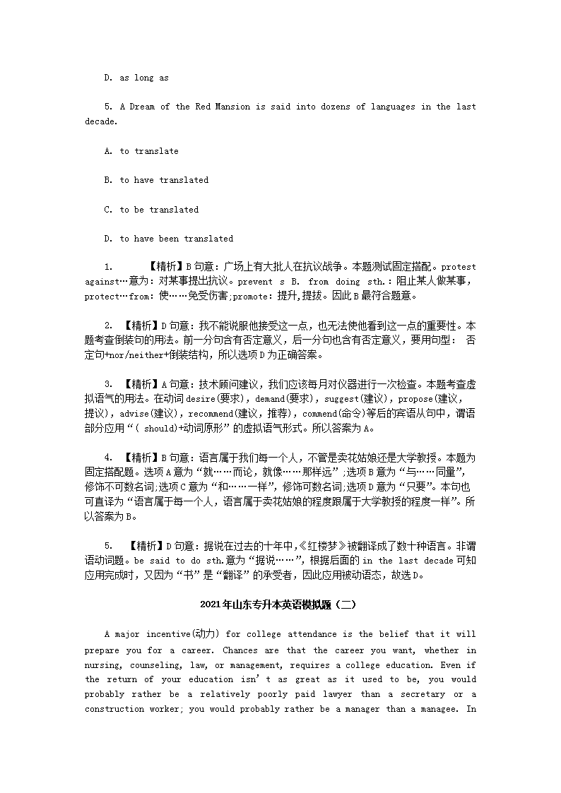【文档预览】 无忧考网整理发布2021年山东专升本英语模拟题三套(Word版),前五页预览如下: