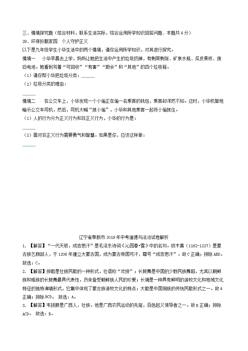 【文档预览】 无忧考网整理发布2019年辽宁省阜新市中考道德与法治真题及答案(Word版),前五页预览如下: