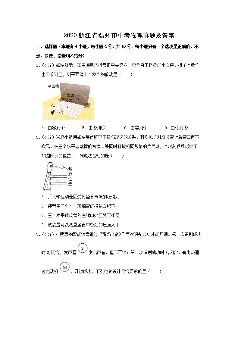 【文档名称】 2020浙江省温州市中考物理真题及答案(Word版).doc