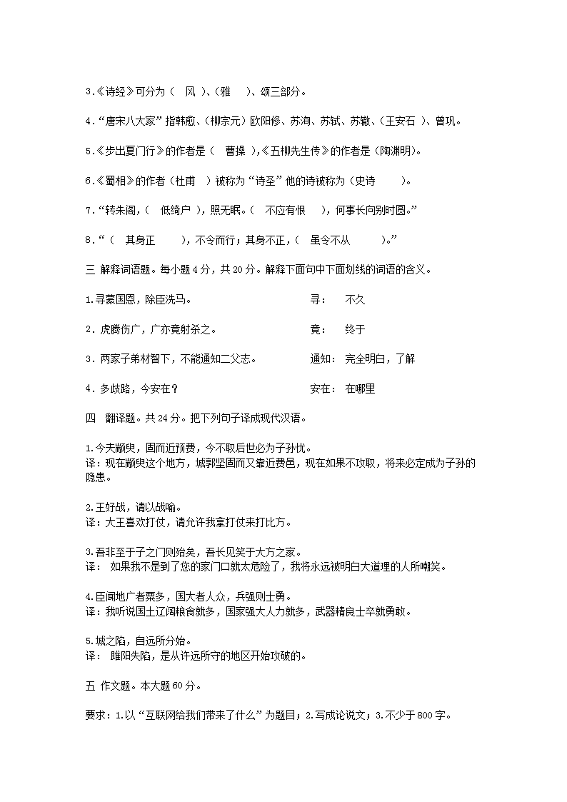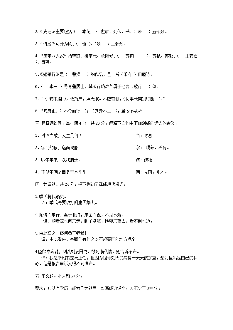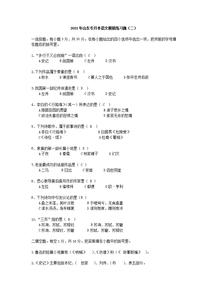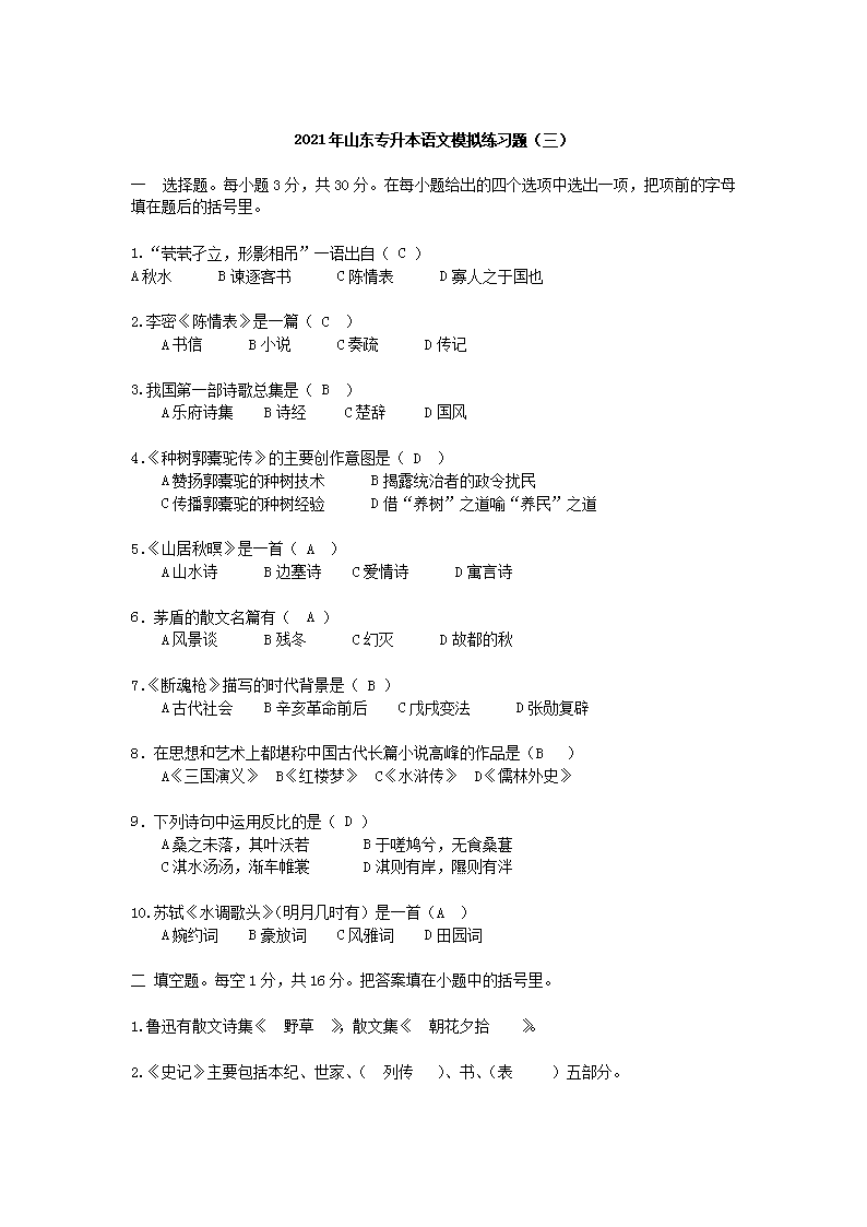 【文档名称】 2021年山东专升本语文模拟练习题三套(Word版).doc