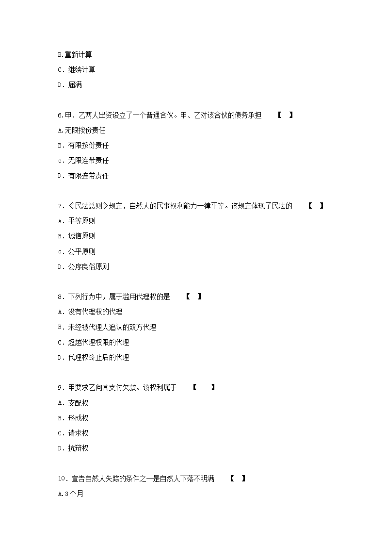 【文档名称】 2018年贵州成人高考专升本民法真题及答案(Word版).doc