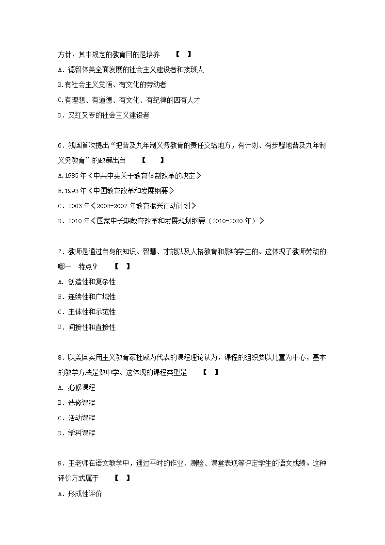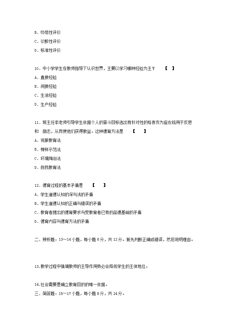 【文档名称】 2018年贵州成人高考专升本教育理论真题及答案(Word版).doc