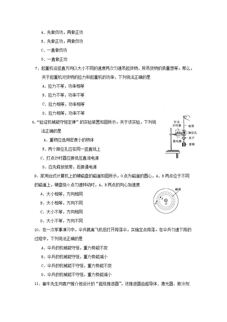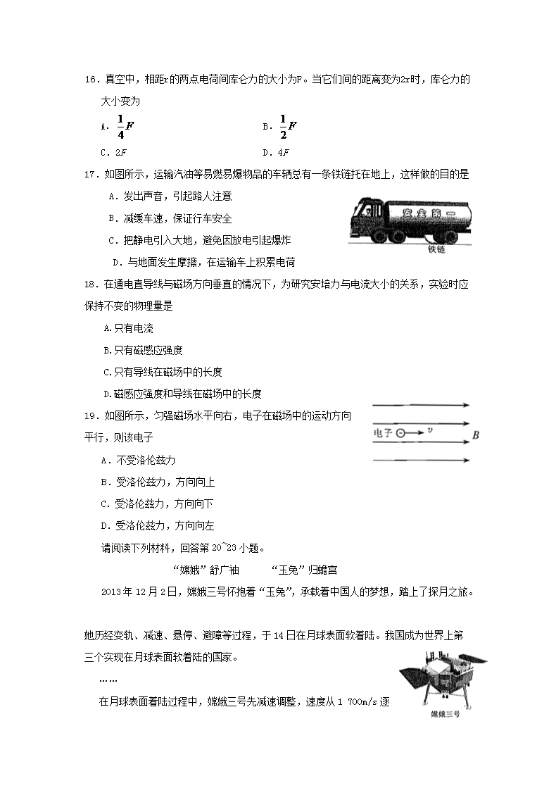 【文档名称】 2014年江苏普通高中会考物理真题及答案(Word版).doc