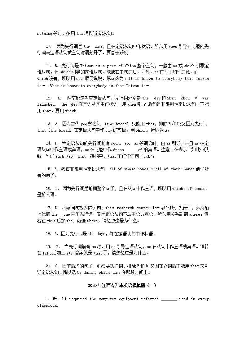 【文档预览】 无忧考网整理发布2020年江西专升本英语模拟题三套(Word版),前五页预览如下: