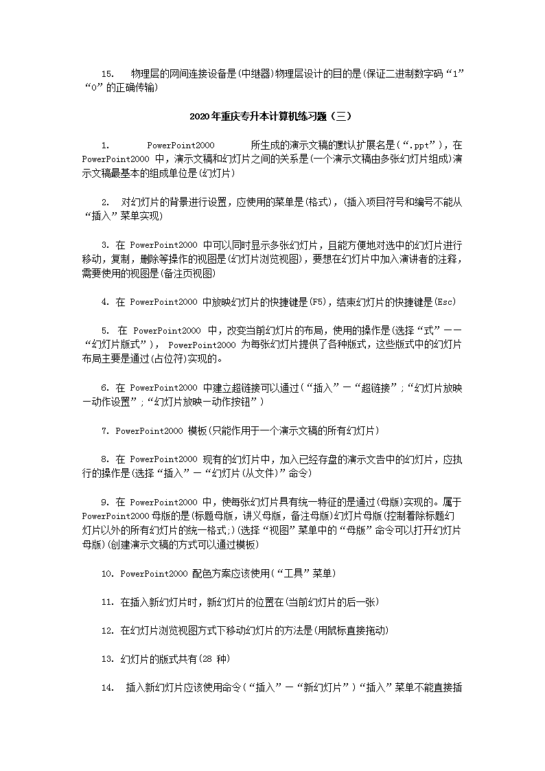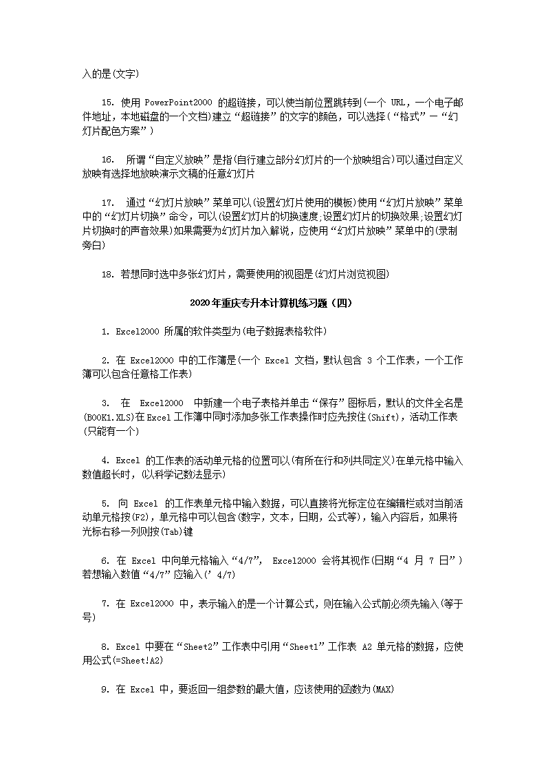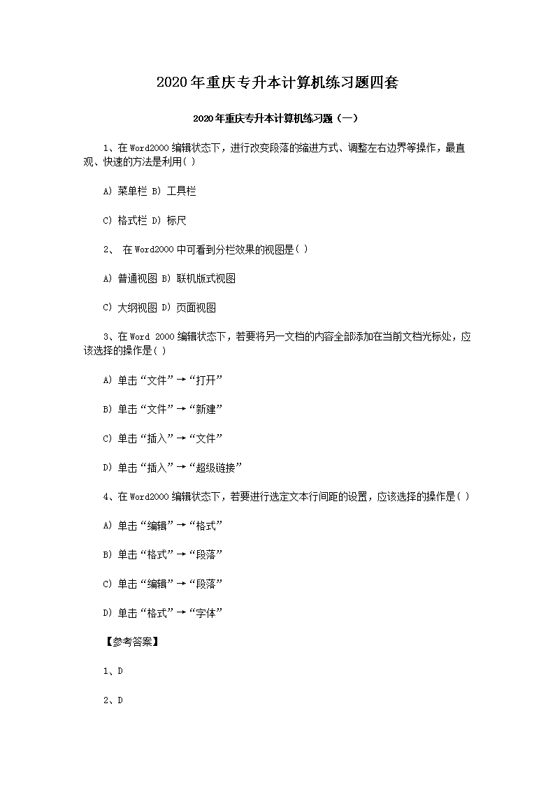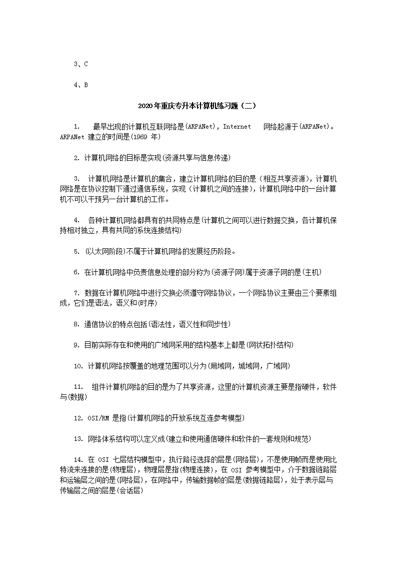 【文档名称】 2020年重庆专升本计算机练习题四套(Word版).doc