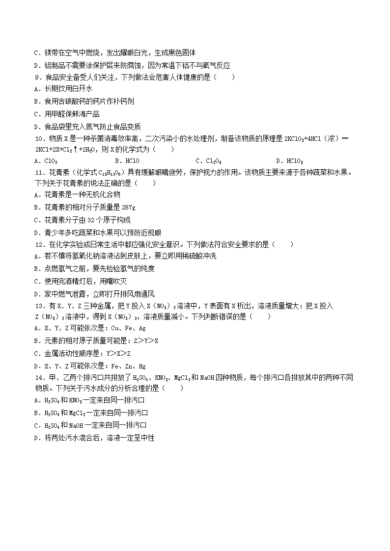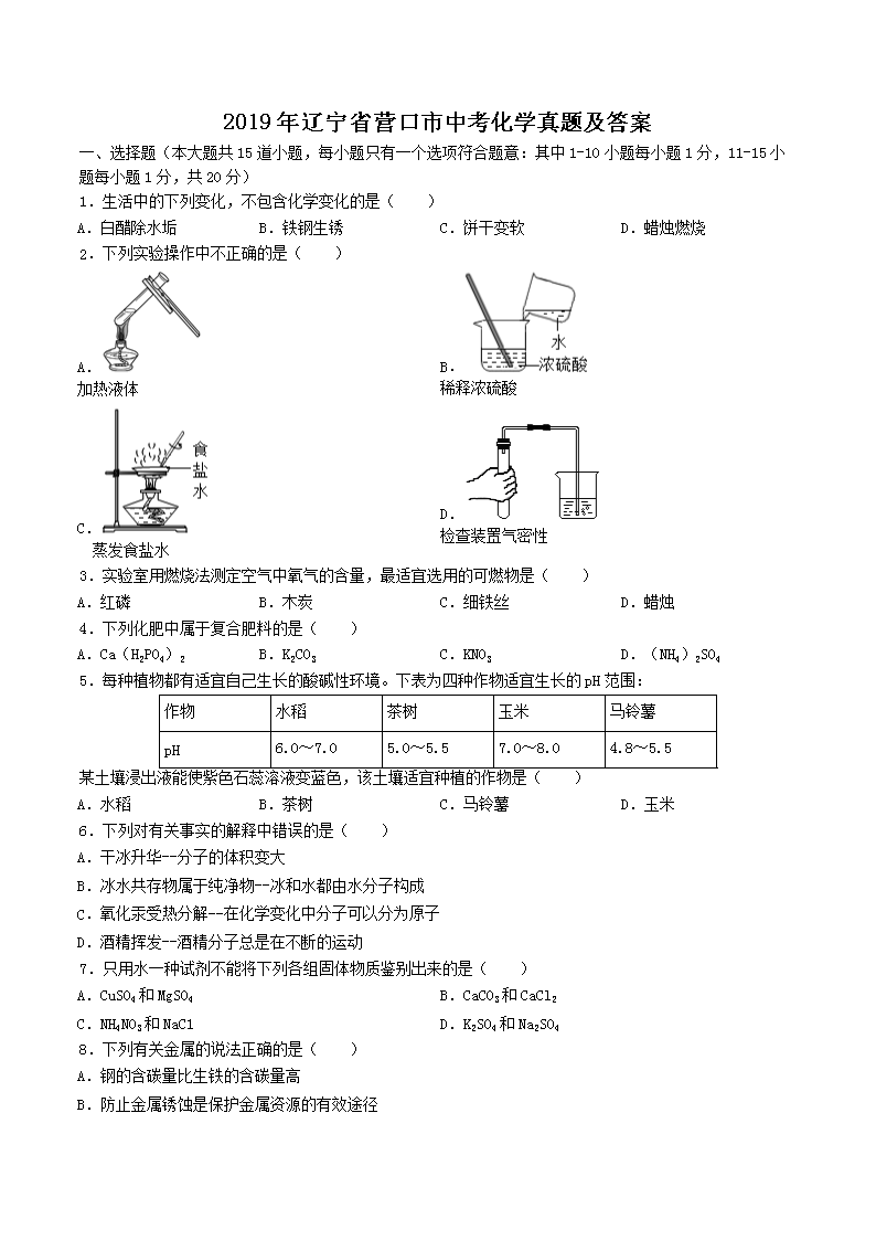 【文档名称】 2019年辽宁省营口市中考化学真题及答案(Word版).doc