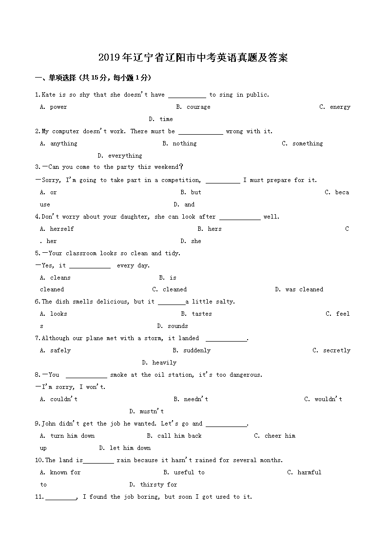 【文档名称】 2019年辽宁省辽阳市中考英语真题及答案(Word版).doc