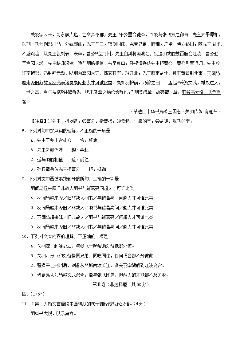 【文档名称】 2018年湖北省武汉市中考语文真题及答案(Word版).doc