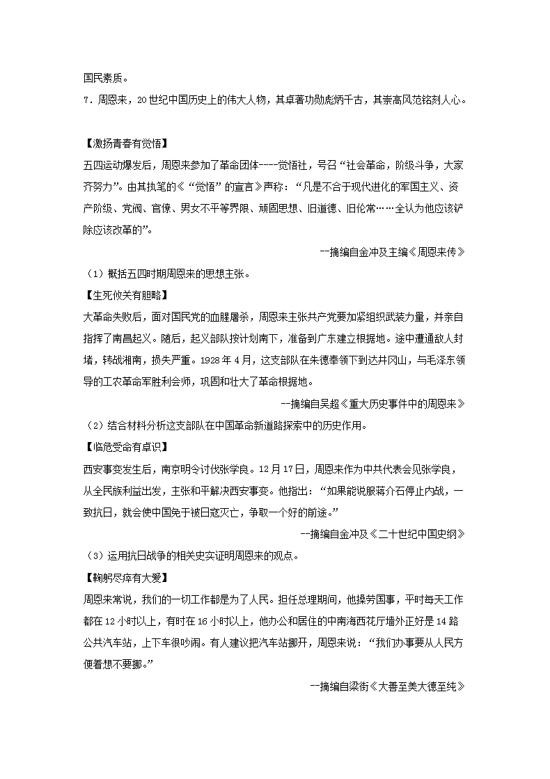 【文档名称】 2018浙江省温州市中考历史真题及答案(Word版).doc