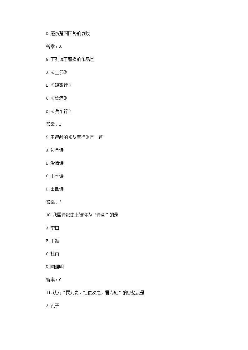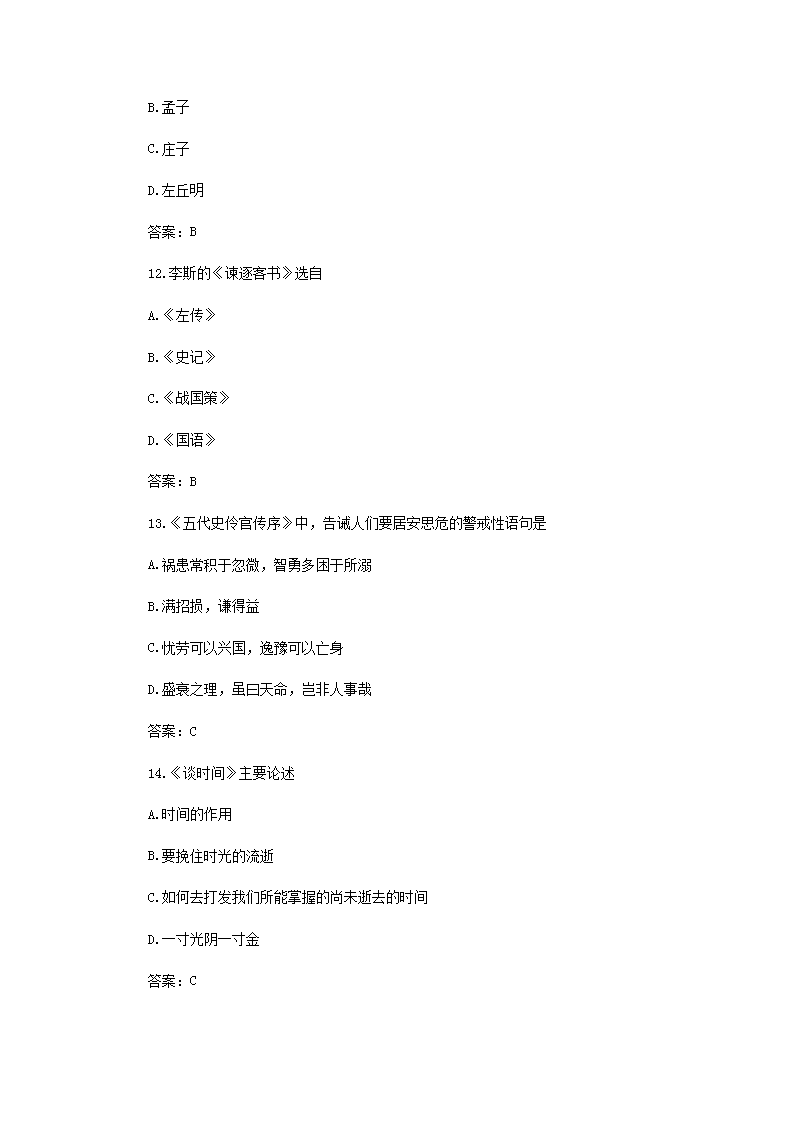 【文档名称】 2020年云南专升本大学语文模拟练习题三套(Word版).doc