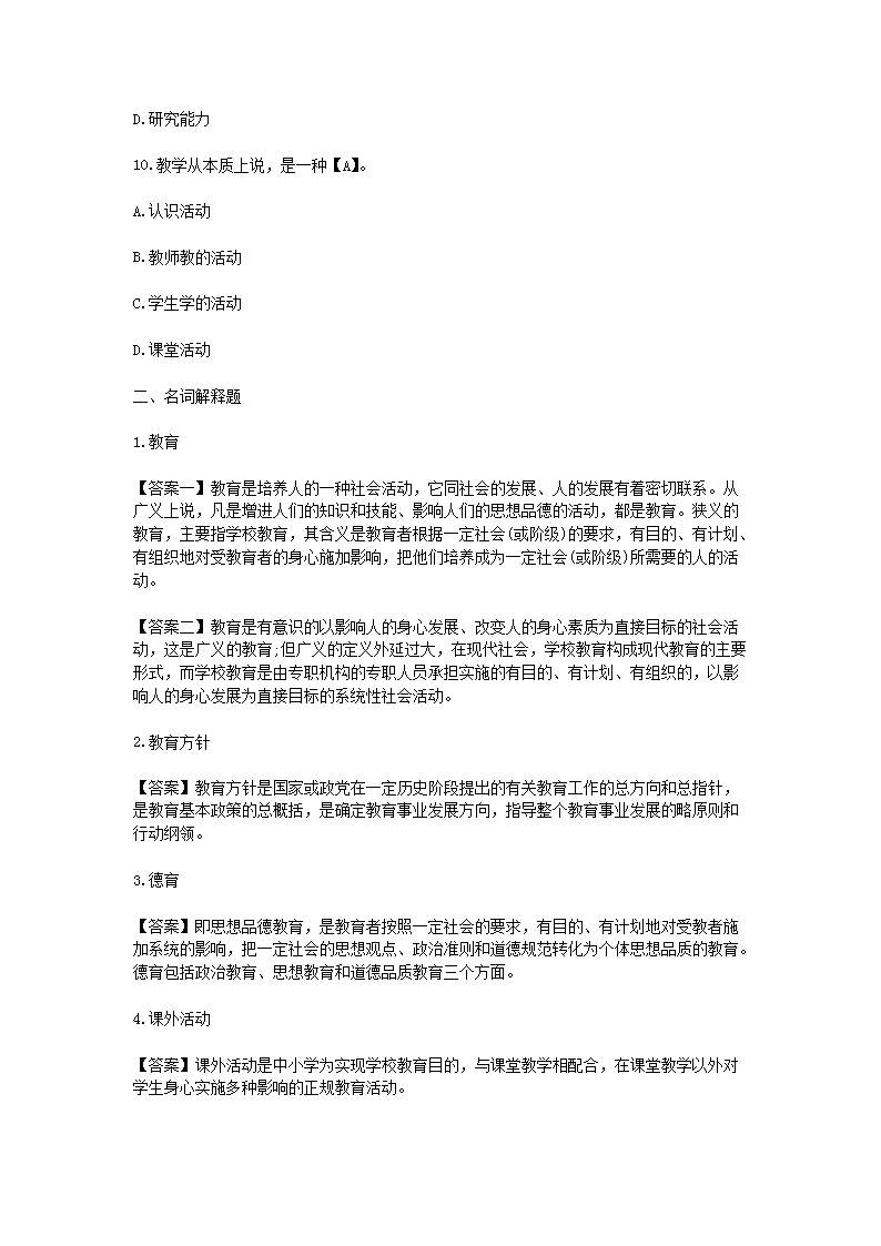 【文档名称】 2021内蒙古中小学教师招聘考试模拟题及答案三套(Word版).doc